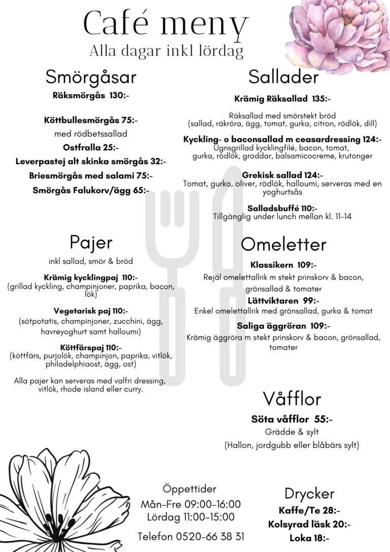 With us, you as a customer can get breakfast with a variety of options, from a tasty sandwich, a hearty omelette, scrambled eggs, oat or semolina porridge, all according to your taste and preference. All sandwiches are made with our own bread. Of course, there is also coffee and tea!
